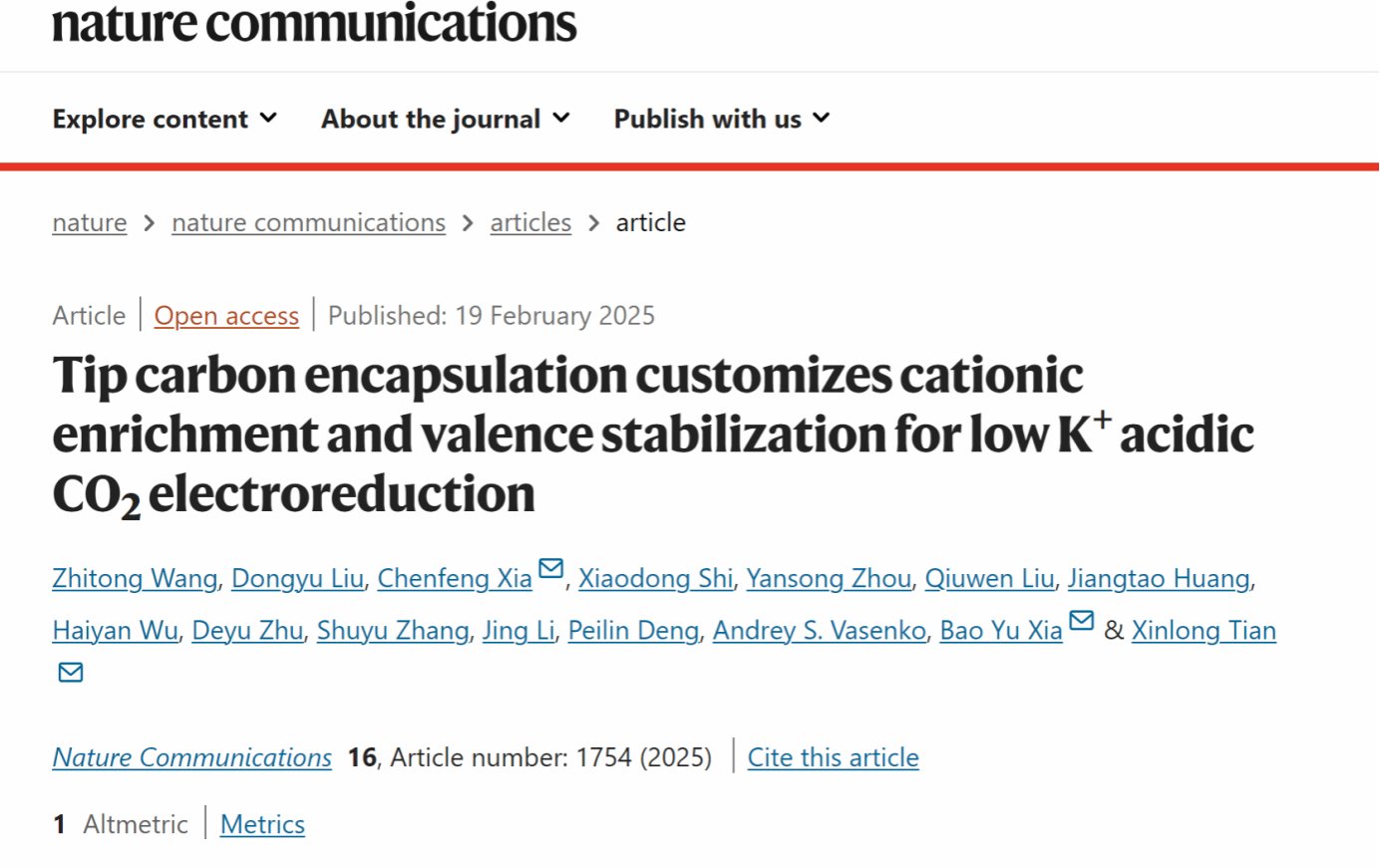 近日,伟德官网海洋清洁能源创新团队王志同副教授在能源化学领域Top期刊Nature Communication上发表题为“Tip carbon encapsulation customizes cationic enrichment and valence stabilization for low K+ acidic CO2 electroreduction”的研究论文。伟德官网伟德官网王志同副教授为论文第一作者,田新龙教授为论文共同通讯作者。